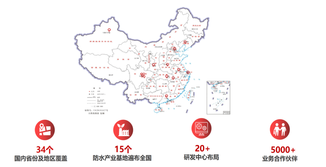 北新防水隶属于世界五百强企业中国建材旗下新型建材平台—北新建材,作为北新建材防水产业整合管理投资平台开展防水业务。北新防水深耕防水领域近四十年,致力于稳定优化产品质量,积极开发绿色环保、持久可靠产品,为行业提供高品质的技术服务。如今,已形成覆盖34个国内省份及地区,15个产业基地遍布全国,20余个研发中心持续输出创新成果,服务超5000家业务合作伙伴。